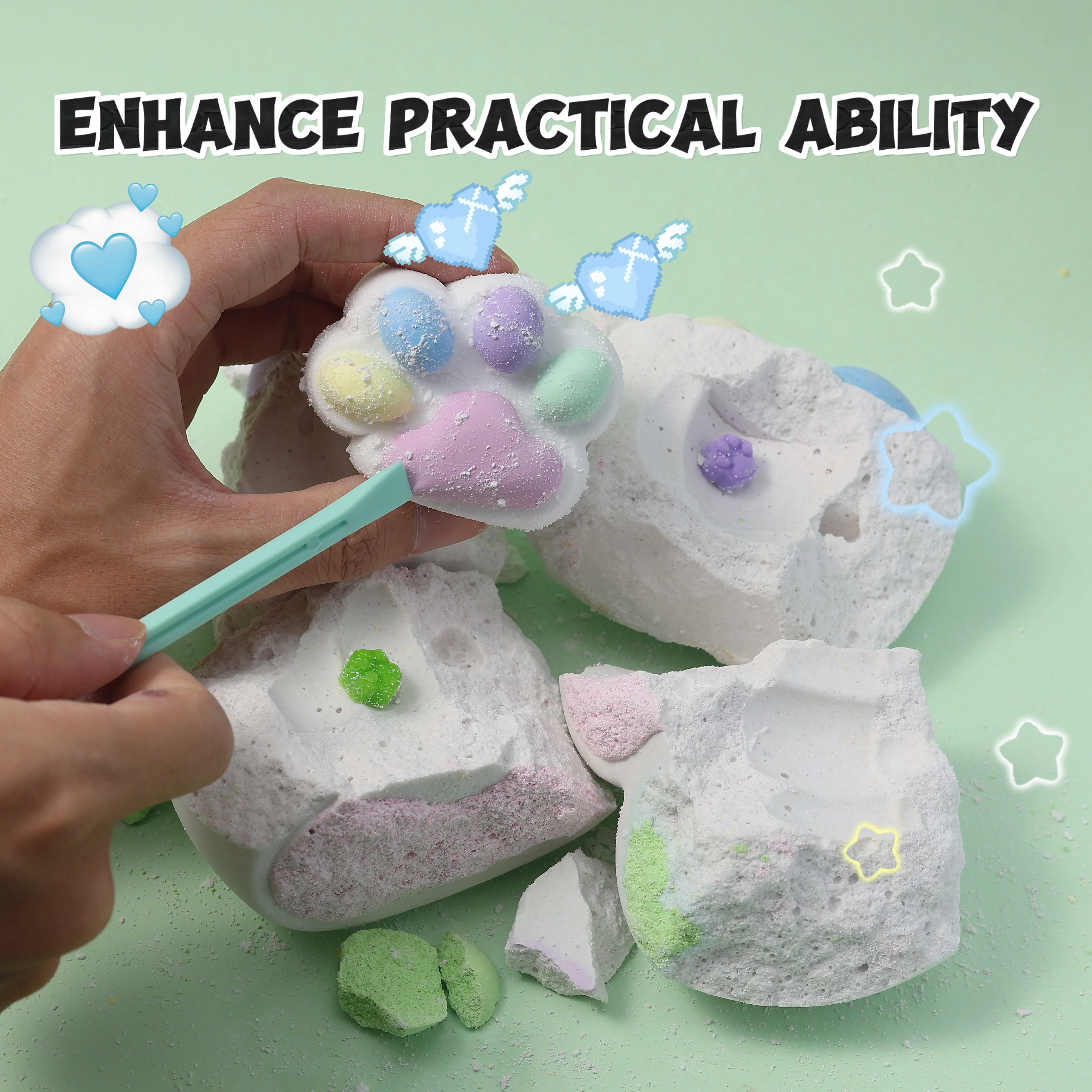 FUFUSQUISHY Giant Rainbow Cat Paw Squishy Dig Kit